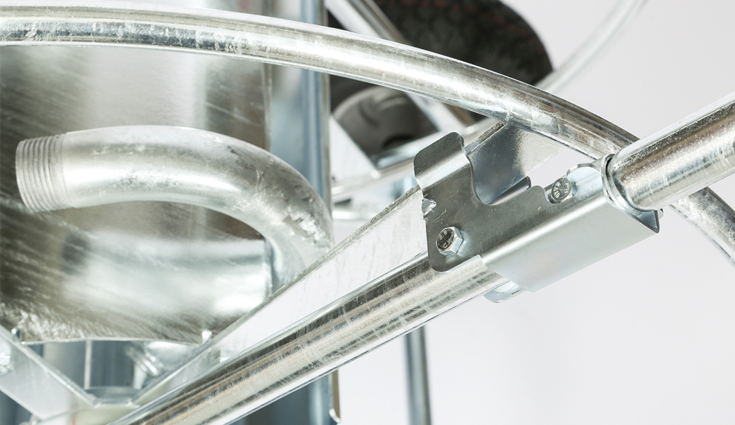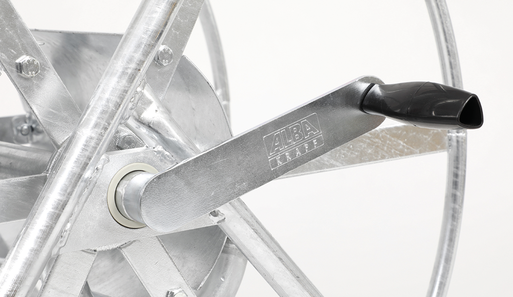 feuerverzinkt schlauchschonende Trommel mit komfortablem Anschlussbogen