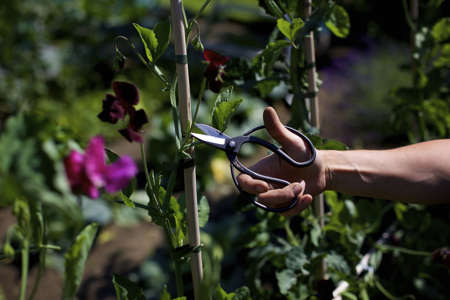 Niwaki Ueki-Basami japanische Gartenschere Sentei Garden Scissors. Allzweck-Gartenschere, die für Ikebana, Schnittblumen, Rosen und leichten Schnitt verwendet wird. Traditionelle runde Griffe aus geschmiedetem Kohlenstoffstahl. Stark, aber fein und präzise für vorsichtige Schnitte. Perfekt für kleinere Hände und Arbeiten im Garten und zu Hause.