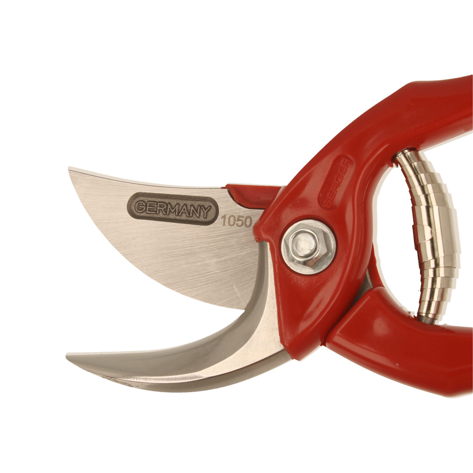 Ergonomische Griffe, kunststoffummantelt in leuchtendem Rot, sorgen für sicheren Halt – auch mit Handschuhen. Universell einsetzbar als Rosenschere oder für Strauch- und Formschnitt im Garten.