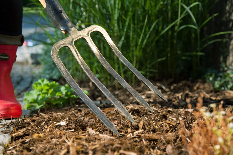 Spatengabel mit Bajonettzinken, Federdülle und Eschen-T-Stiel 280 x 180 mm, 4 Zinken. Umgraben, pflanzen, lüften. Das ideale Werkzeug zum Lösen und Bewegen des Oberbodens. Durch die Zinken können Pflanzen schonend ausgegraben werden, Wurzeln bleiben gut erhalten. Auch das Zerteilen von Regenwürmern - welche eine äußerst wichtige Funktion zur Verbesserung der Bodenqualität haben - wird vermieden.